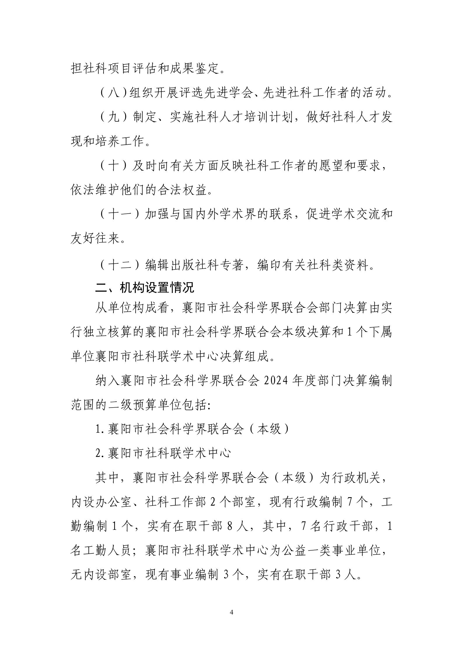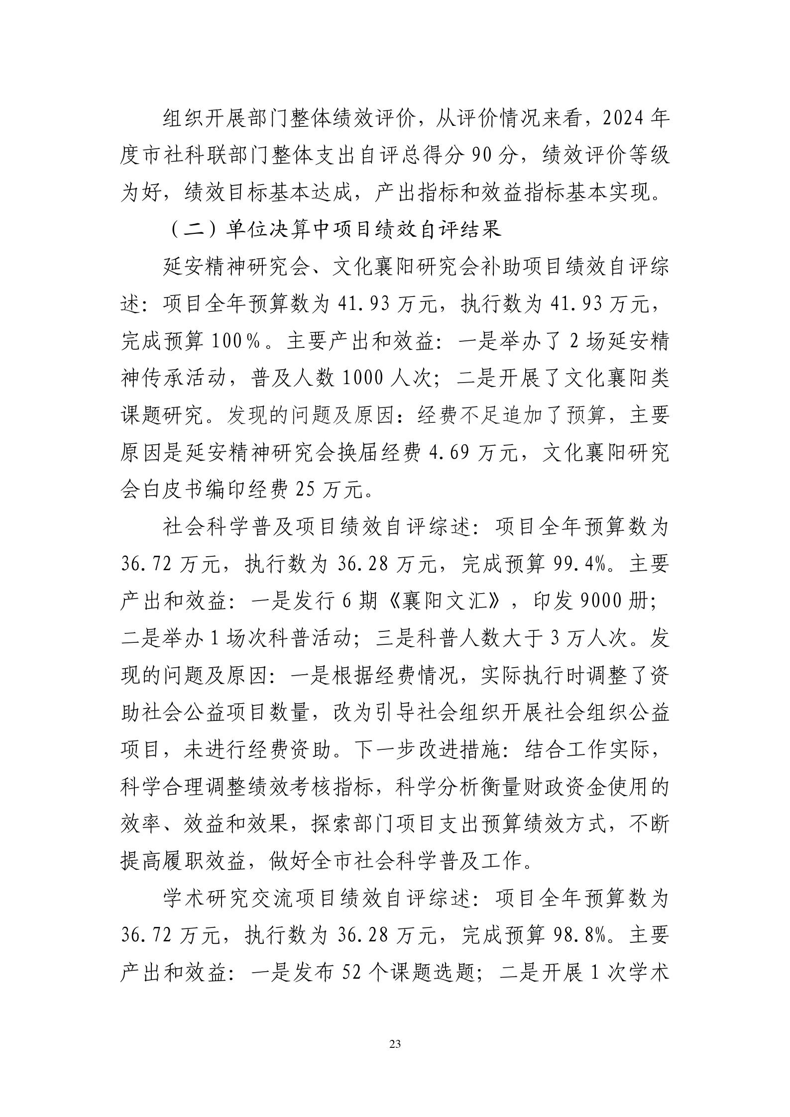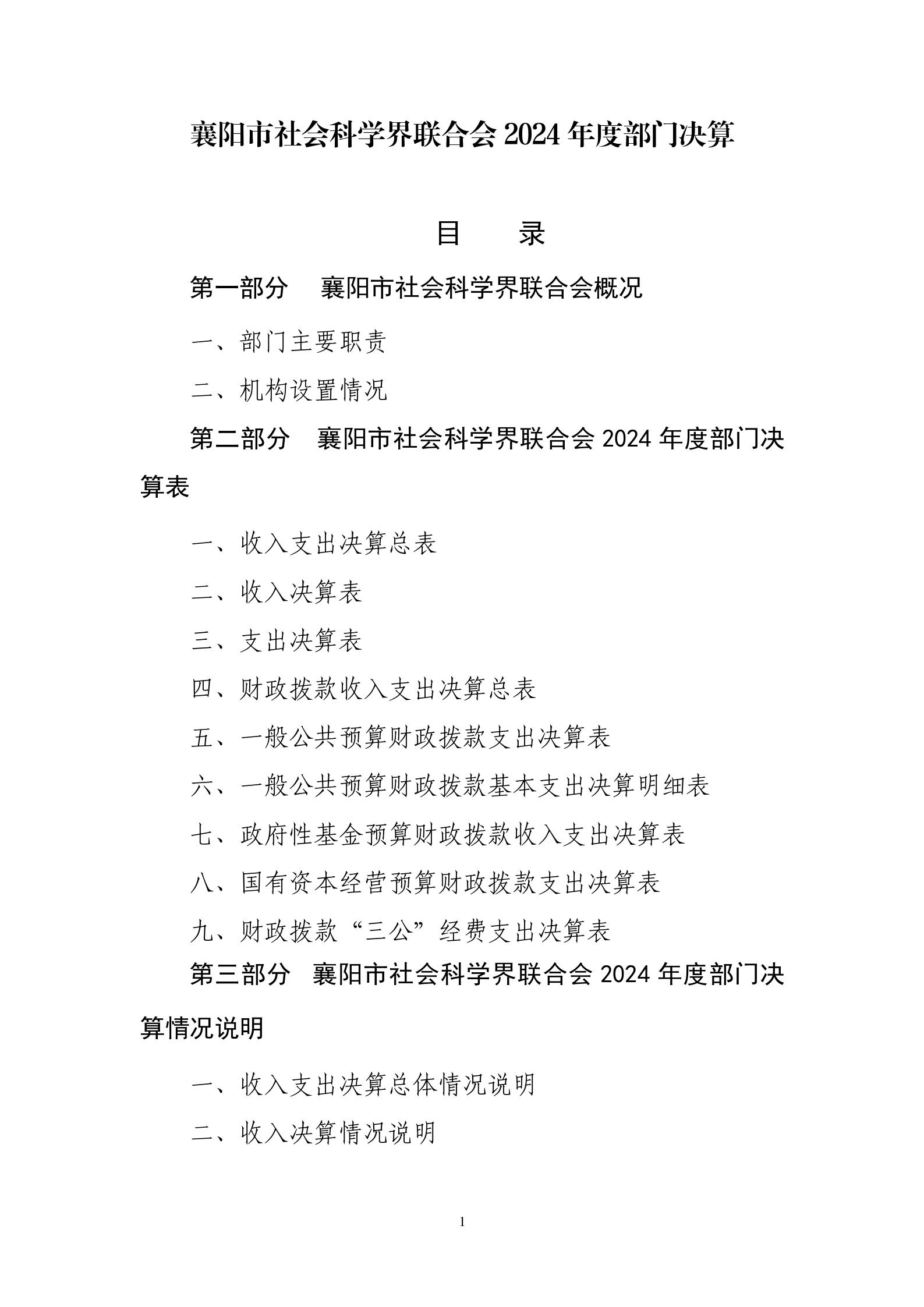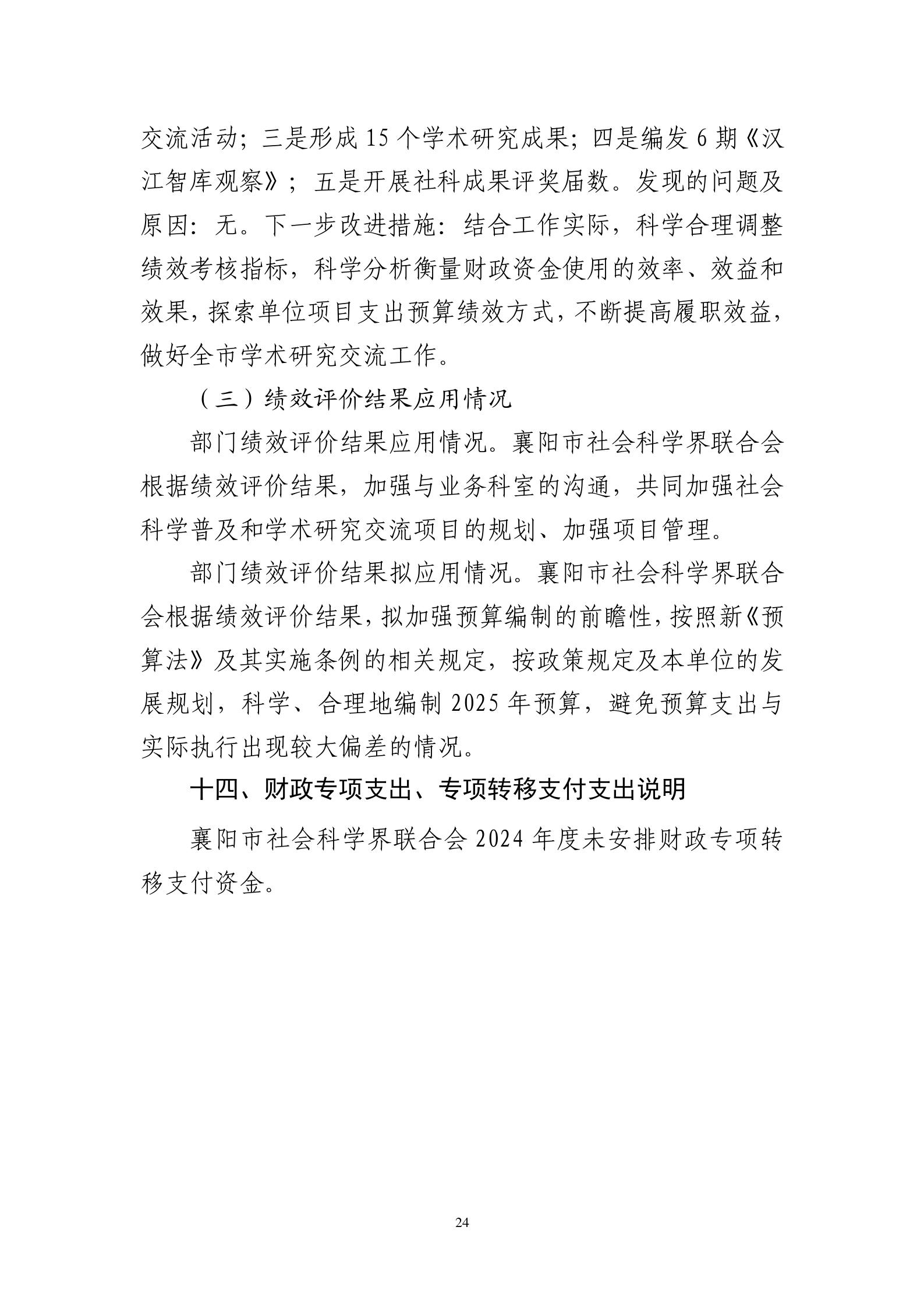 襄阳市社会科学界联合会部门(汇总)2024年决算公开