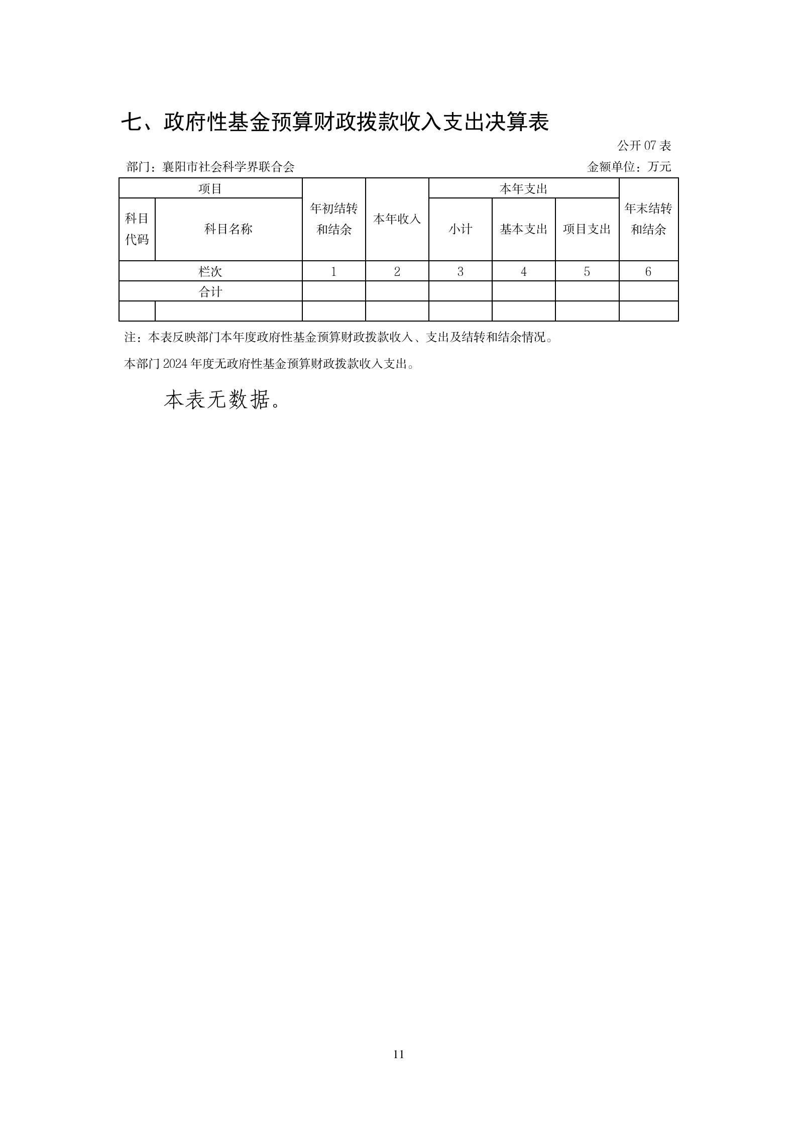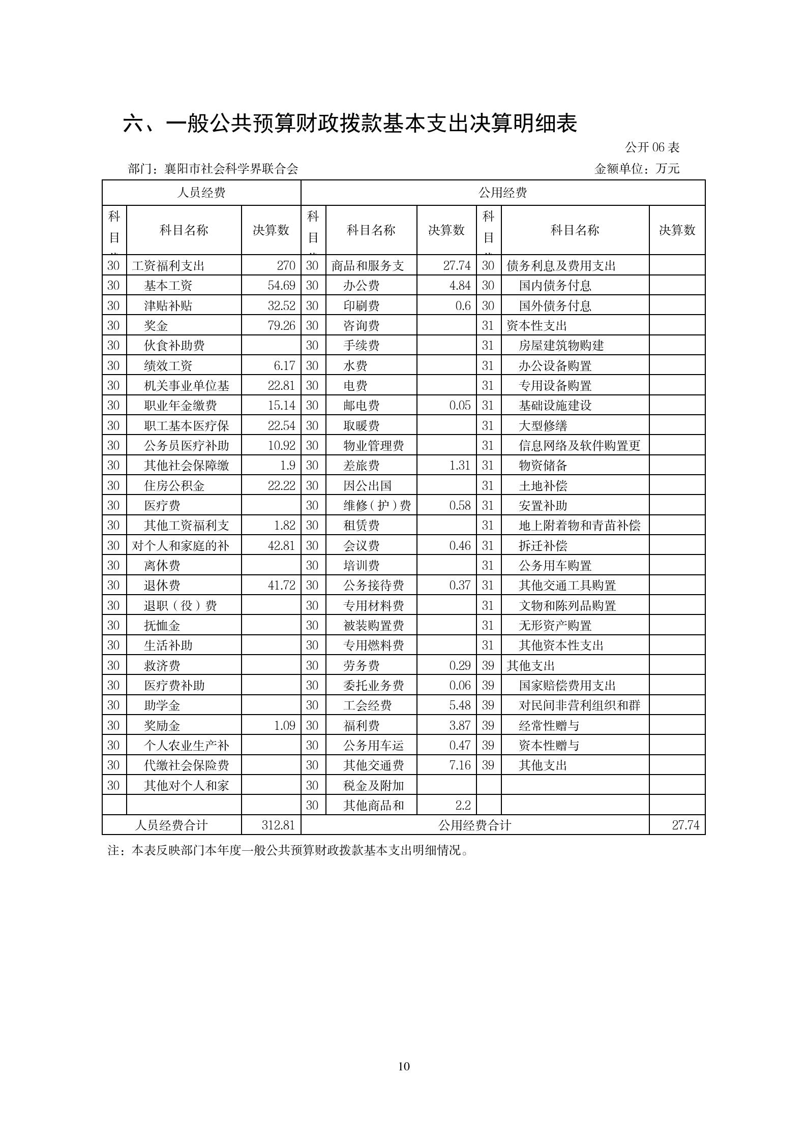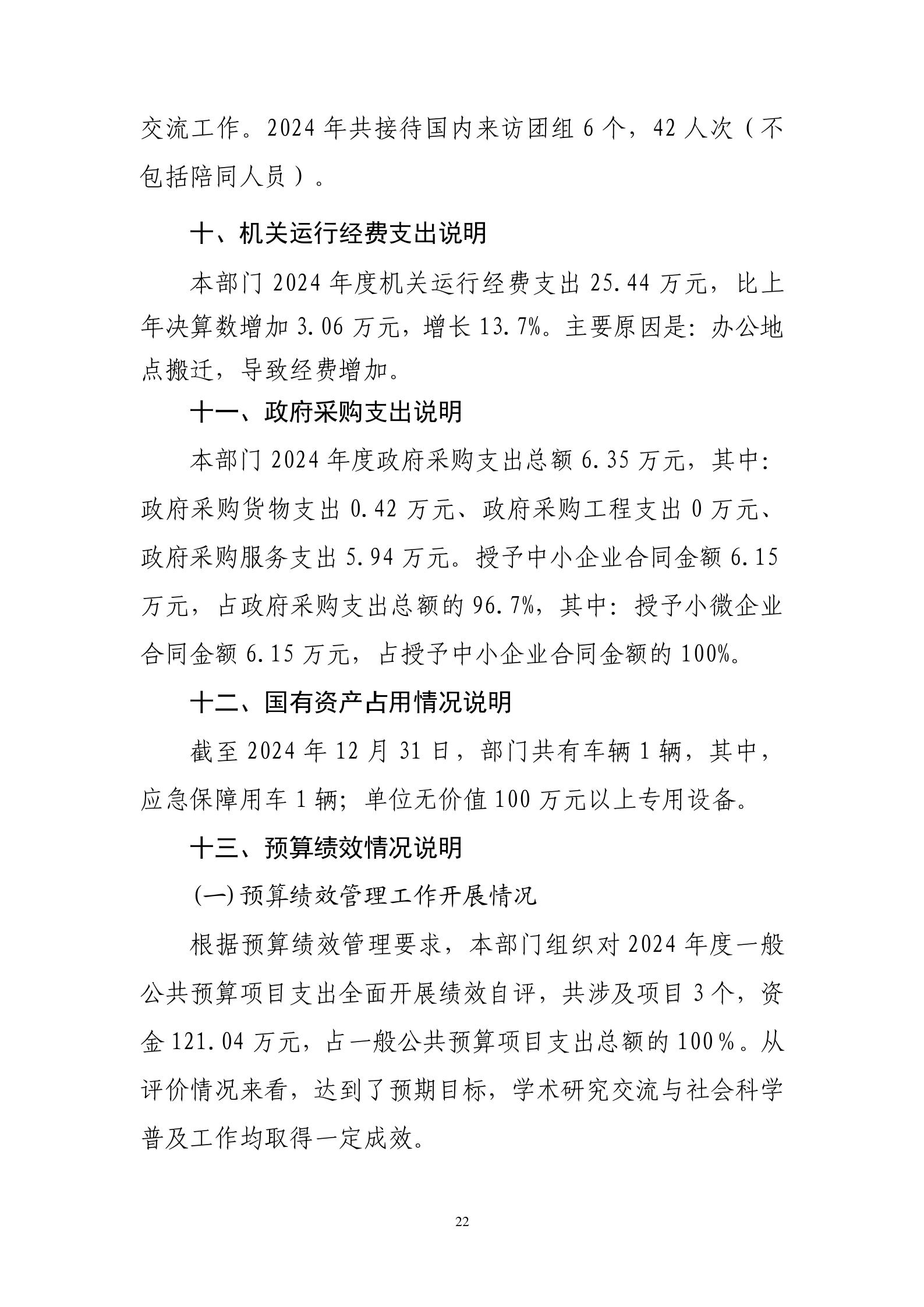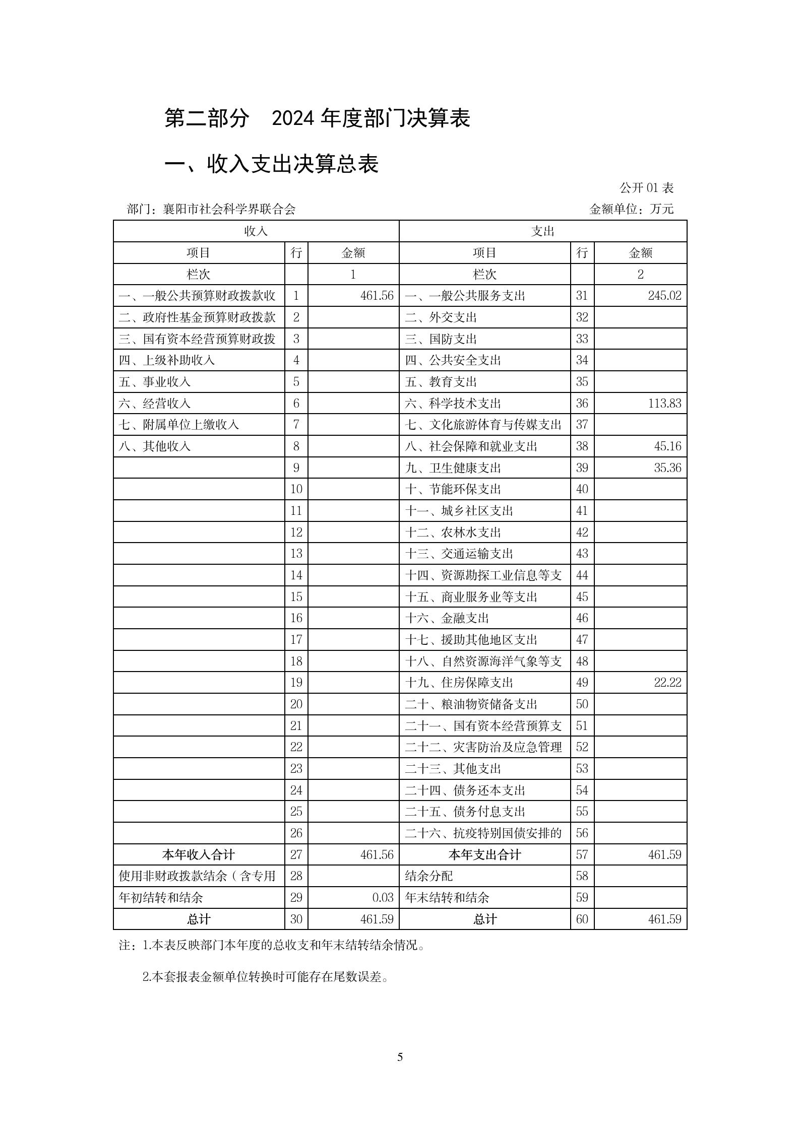 襄阳市社会科学界联合会部门(汇总)2024年决算公开