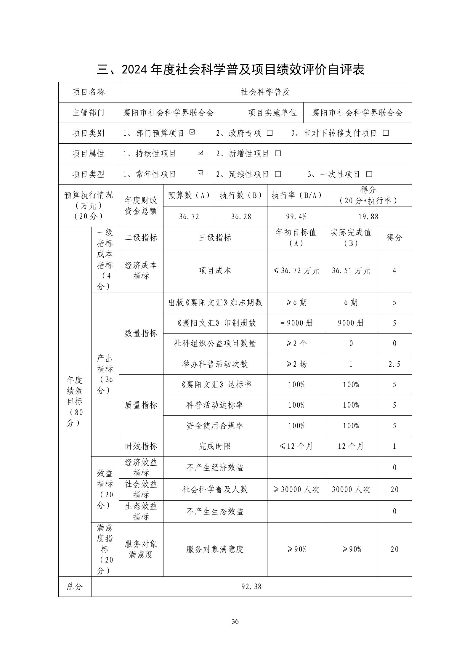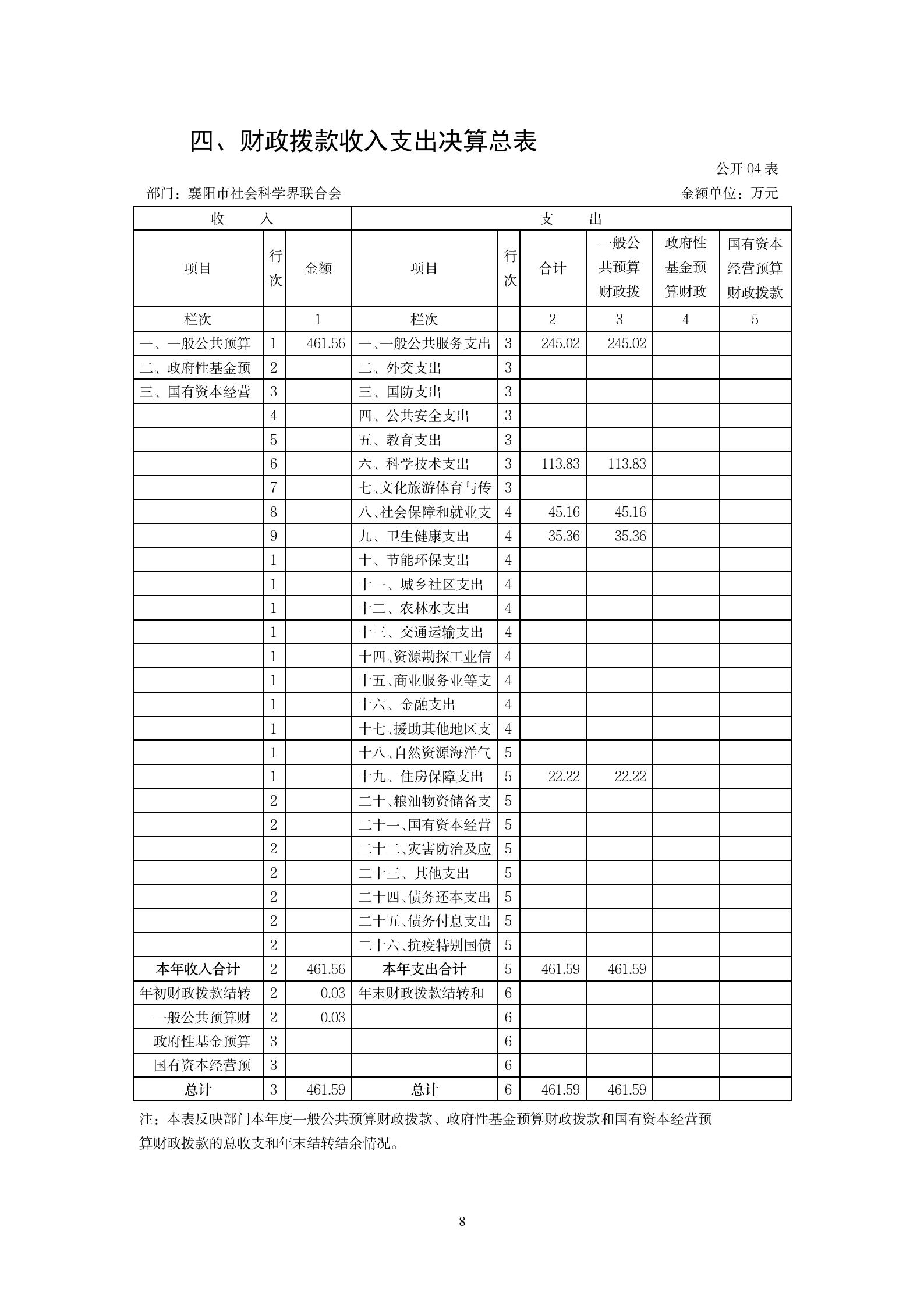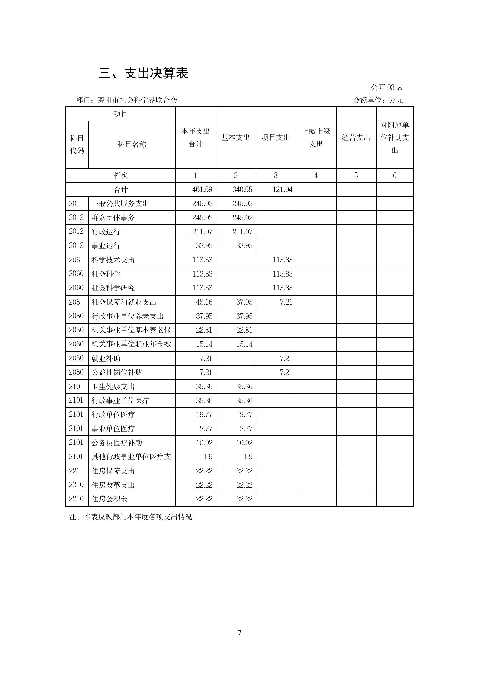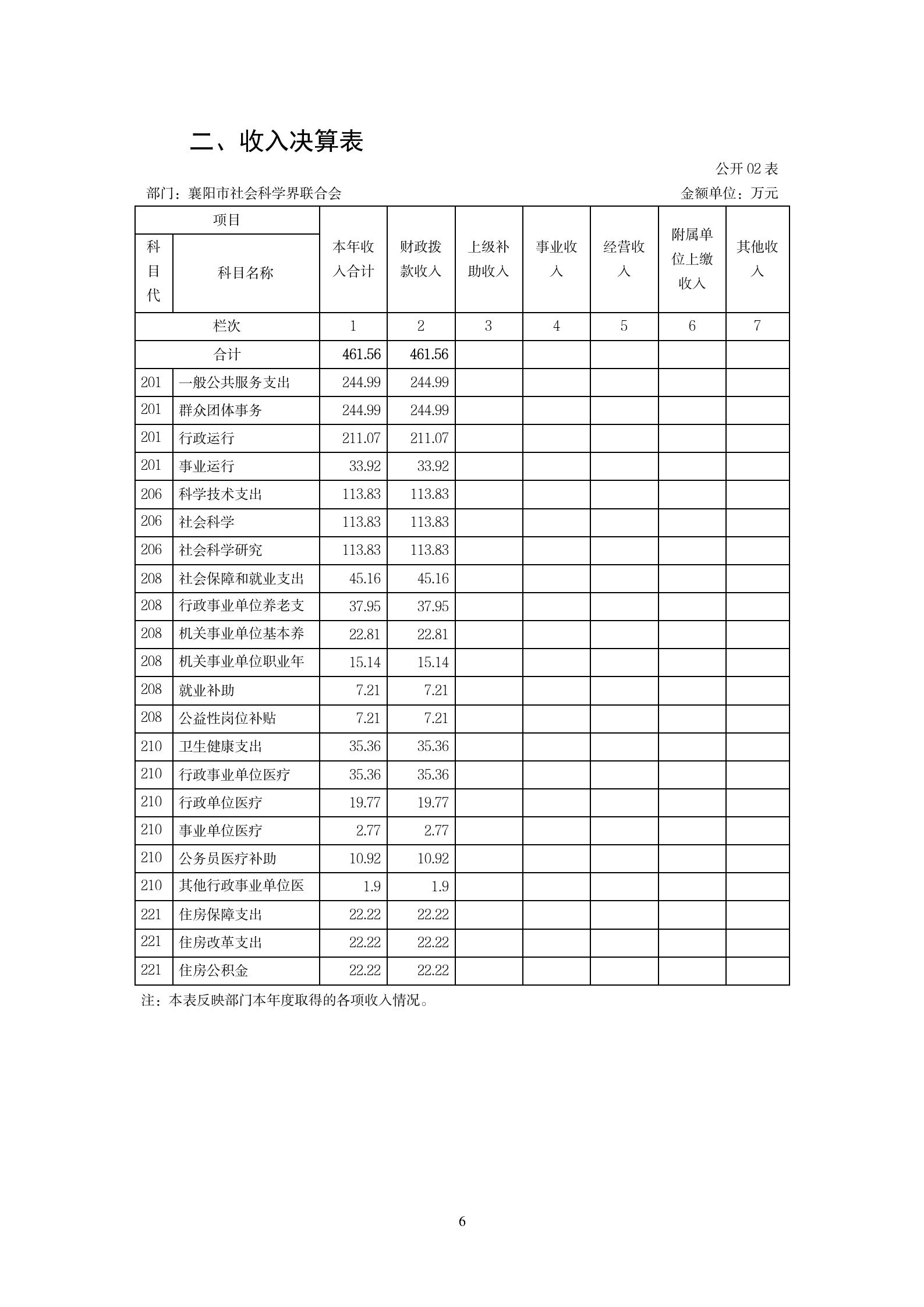 襄阳市社会科学界联合会部门(汇总)2024年决算公开